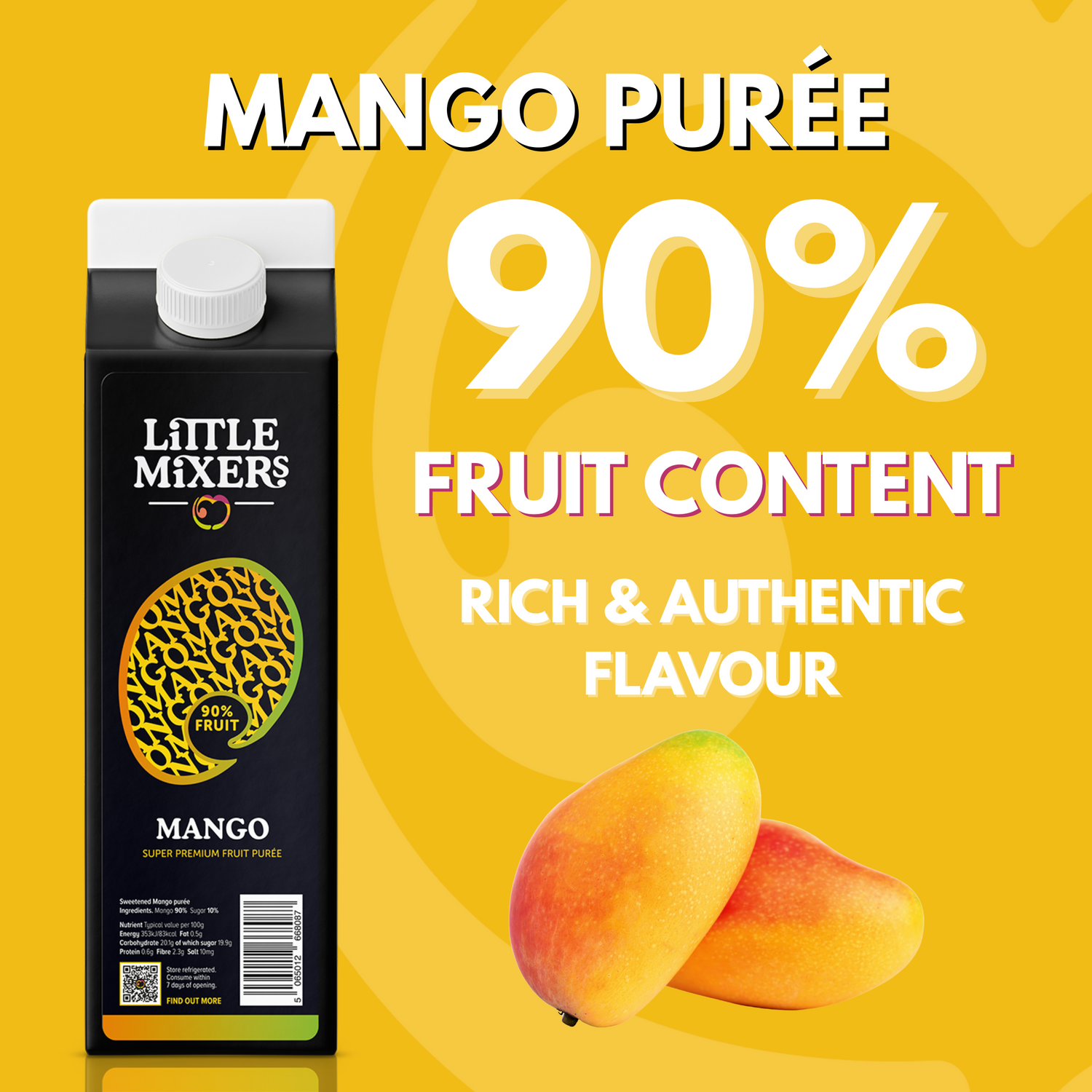 Made with 90% fruit content and sourced from the finest, ripe mangoes, this ready-to-use purée brings a sweet, velvety taste to your cocktails.